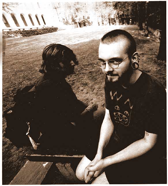 long ago taken by Lara Mushkat, probably in 1994 or so. Saira found this one and I nabbed it off of her page... It's frighteningly obvious that we were in the depths of our acid gobbling freaks period: