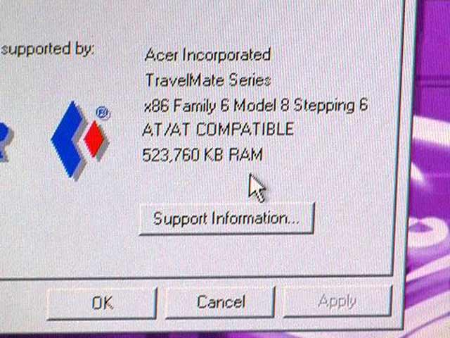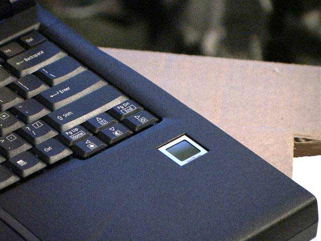 Anyway, the list goes on, but below is one of the slicker machines… It's an Acer Travelmate 739TLV — 512 meg of RAM, 40 GIG of hard drives, PIII-850, S-video out, DVD drive, and, most of all a built-in fingerprint biometrics system. Whenever the machine is turned on, or specific filesystems are accessed, you have to confirm your identity via fingerprint. Before you plan on breaking in to my house (which contains only a few old PIII-500 desktops and the G4), this machine isn't located here. While BME may not officially have any staff, it does have a number of “shadow workers” who manage other tasks for me when I need them done… and that's where this beast is hiding.