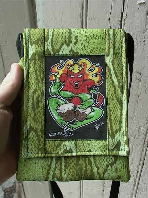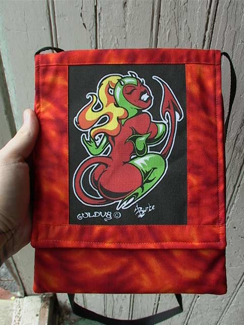 Oh, and Ryan from BMEshop just stopped by to show me a new item he's just gotten in. I know we've talked about it for some time, but we finally have bags! They'll go into stock in a few days, along with the new shirts which should go in at the start of the week. The bags are really nice (plus they come with a great sparkly sticker), and are solidly made. Right now we have about 10 different fabrics (some “snakeskin” types and some flame fabrics in different colors), two or three sizes, and four different front prints. If they do well, we'll be doing a new set soon.