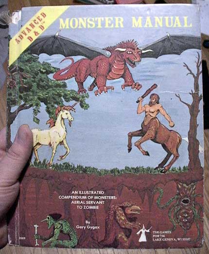 Ah, the Monster Manual — “Aerial Servant to Zombie” — I have a 4th Edition book, printed in 1979. Still pretty damn early… |