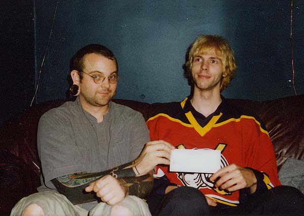 Went to dinner at Buddhas (666 Dundas West) with Tomasso, MiL0, PhilipBarbosa, Blair, mjh, Adrienne, and kaelinne. Afterwards the remnants of the booze — including perhaps FOUR Crest 10% Super's were poured into everyone… I don't know if that makes me a good host or an evil host, but it was fun. MiL0 took some “Polaroids” on her spiffy new Fuji automatic: