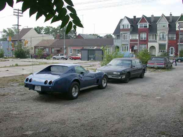 When I got back I bumped into my neighbor (who drives the sort of cruddy car parked in front of my Vette). Talked to him for a while, and then he had to leave… To my immense amusement, I watched him turn his car around in the driveway — TWICE he smashed into the crazy lady's fence. Through some miracle it didn't break, but I'm sure it must drive her crazy. He definitely enjoys antagonizing her as much as I do!