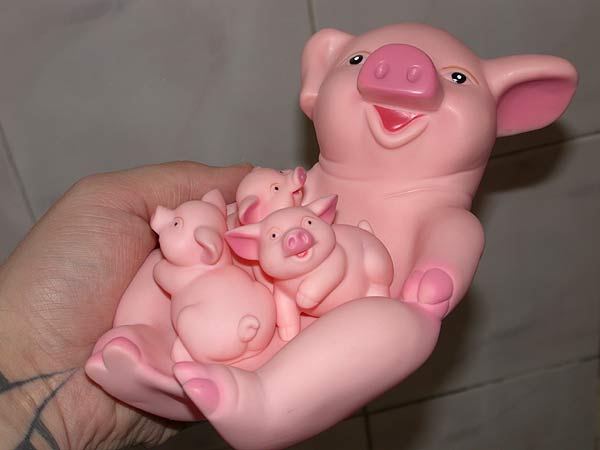 Rachel gave me some rubber piggies to keep me company in the bathtub.