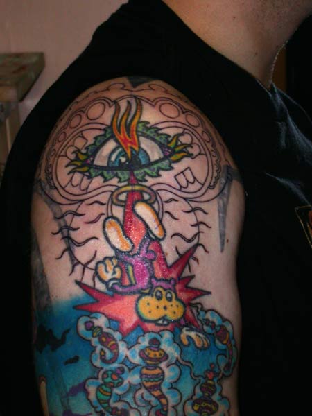 Today was my King Of Fools day (getting tattooed that is). On the way there I saw a horrible woman nearly kill a pedestrian — she hit him with her BMW, and then spent the next fifteen minutes on her cell phone, constantly looking at her watch, and glaring at everyone around her. I shouldn't say “hit him” — she actually ran right over him, realize what she'd done, and then backed up to get off of him, running him over a second time. She almost killed someone, and couldn't care less — the meeting took priority.