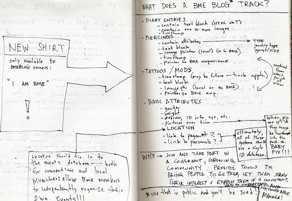 I'm pretty sure that was the first time I'd started to plan what was to become iam.bmezine.com… And yes, I really do design everything on paper. Even things like data structures are written by hand first, and then entered into the computer.