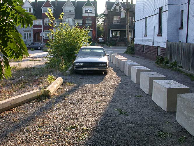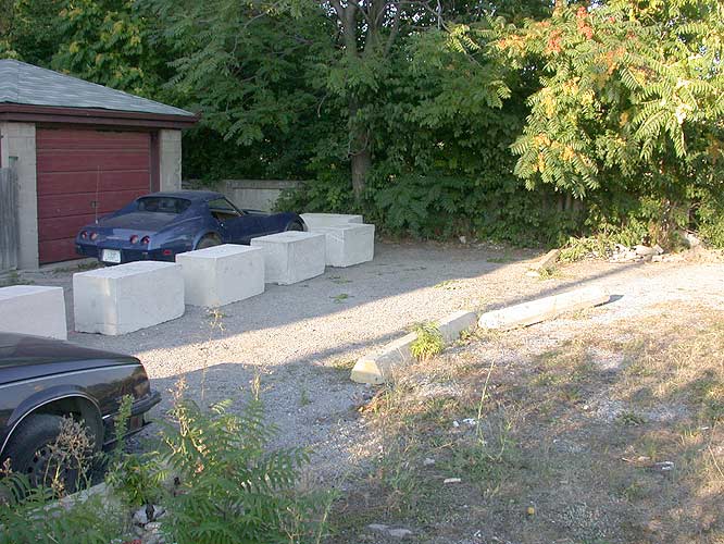 That garage was built before the now levelled warehouse. When the warehouse was built in the 1930s, they left the right-of-way as it is now. Not only that, but it was the owners of that lot who originally defined the size of the right of way when they put up the parking pylons something like twenty years ago. It's only the greedy folks who are now trying to cash-in who are attempting to do an illegal land grab. So who knows… It's not my problem any more.
