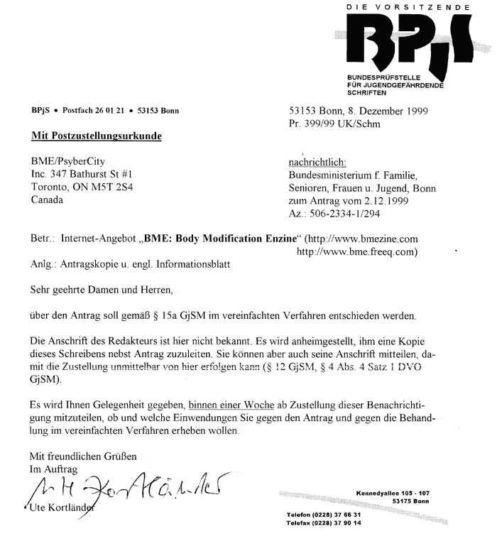 Here's a scan of the letter I got telling me about how I'd be charged with child endangerment (or something like that) if I ever came back to Germany… I'm a German citizen (dual with Canada), so there'd be no question of jurisdictional issues. So about three years ago Germany was added to my list of places I can't go to anymore.