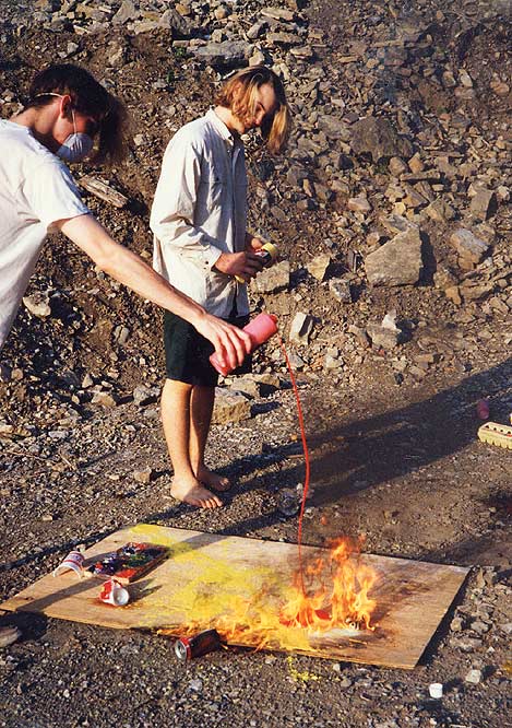Action painting in highschool. No, it's not a vegan painting (look in the background). |