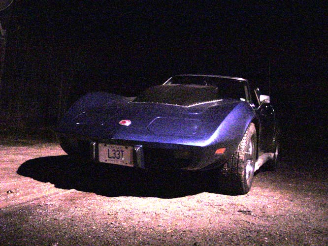 Woo-hoo — I've been sick and feeling down all day and suddenly my Vette arrives on a flatbed. There's still a ton to do (it's blown now, but just has a cheap “sled” cowl, and needs lots of visuals as well as new tires, suspension work, etc.), but it's good to have my car back.