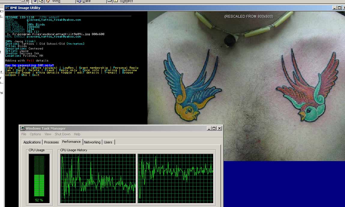 WOW! Dave Bastard just sent me this awesome photo from LEA (mini-portfolio in the next update, and check out her web page if you like artists like Joe Coleman). I have to admit I really like it. It must look wild in person and moving…