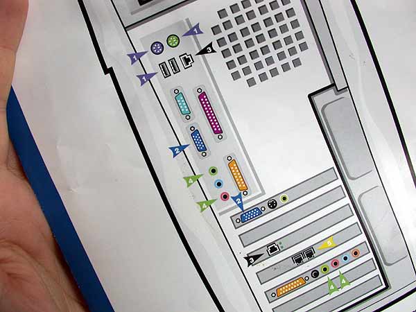 So this Systemax computer has a dual display… or so I thought — as did the fool that sold it to me who assured me it would do dual-monitor support out of the box. Take a look at the back of the machine (from the installation guide):