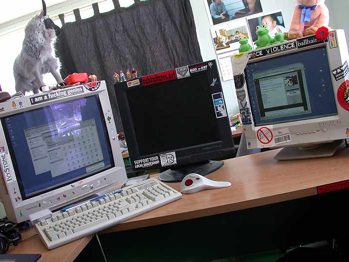 OK, I've got the new box up and running. I haven't transferred over anything except Eudora so far, but I've got it downloading the thousands of emails from the last day or however long it's been… I've got a pair of 120 gig drives that aren't doing much so as soon as that download is done I'll install those as a mirrored pair so there's an additional layer of safety for my sourcecode and BME content.