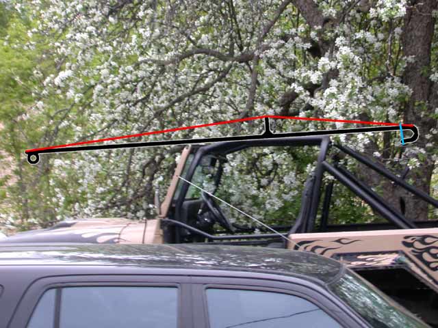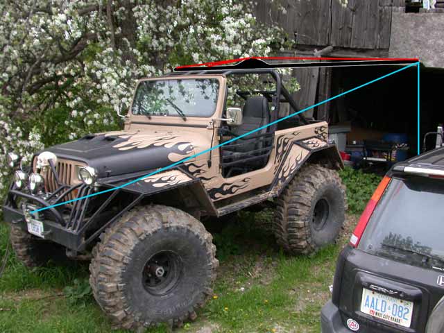 So when you're driving it mounts lengthwise and stays in “road legal” territory. Then you pull up onto the side of a bridge, spin the beam ninety degrees, lock it into place, and you're good to go… then yank the person back up (easy since your mounting point is already eight or nine feet off the ground; just pull the pulley to the top. Pop out the pins, spin the beam back, re-lock it into the driving position and disappear into the night.