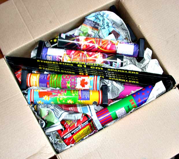 The fireworks just got here for the BMEfest BBQ. I made sure to grab all of the “just made legal in Canada” new products and also a pile of big sparklers for people… Thanks again to our friends at Kaboom who I think are now supplying us for the fourth year in a row! I definitely highly recommend them; always excellent product and customer service.