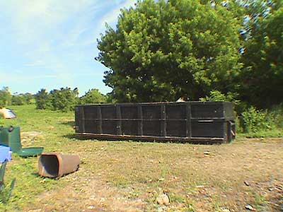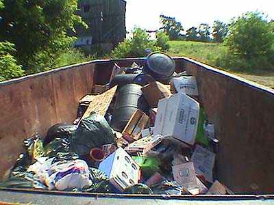 I'd mentioned that we rented a dumpster for BMEfest cleanup (and the house too). Anyway, this was the smallest one they had. It's half the size of a railway car. Pretty gigantic. That said, as it turns out we'd have overflowed a smaller one.