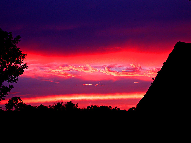 Anyway, other than that, I just had one of those “I must run out and take a photo of that sunset, even if it means a hundred mosquito bites!” moments… Here's what it looked like, for all of thirty or fourty seconds — it's such a momentary phenomena…