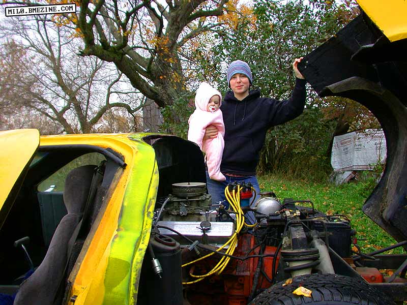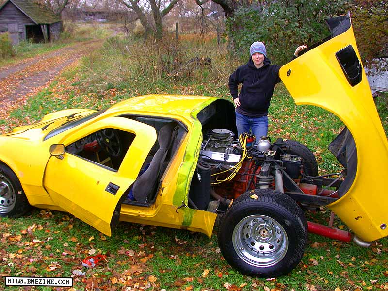I was asked to post some pix of the Kelmark after cleaning and before putting it away for the winter (I'll be roping today's guests into helping push). It's got a lot of trim issues, and some fit and finish type stuff, and I don't like the way the gas tanks are set up (dangerous), but on the whole it won't take a lot of work to get it up to street or even show quality.