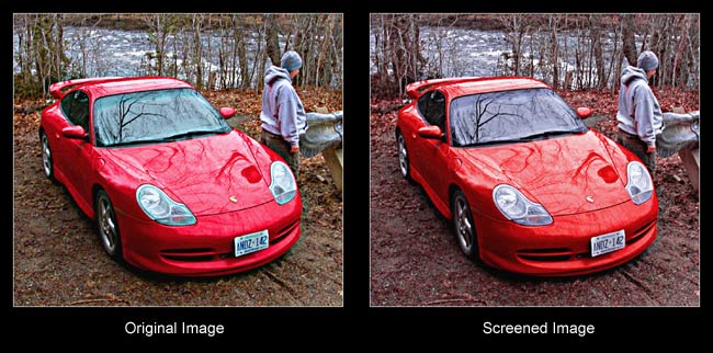 My software is optimized for one thing: taking full color input images, and producing multi-ink screens for extremely limited amounts of colors, in order to try and create a close representation using as few inks as possible. For example, in the image below, I chose red, white, and a pale blue, and asked it to screen the image onto a black shirt. I've included the screens, as well as the original and output images: