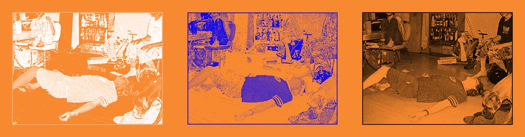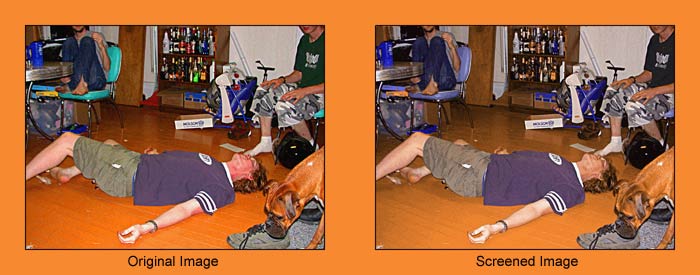 As you can see, some of the tones change very slightly, but on the whole it does a remarkable job. In the sample below, I've screen a different image onto an orange shirt, using white, blue, and black ink only — the software is able to cleanly integrate the shirt's tone into the image.