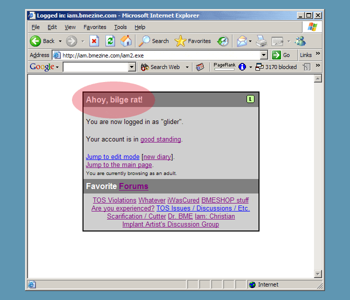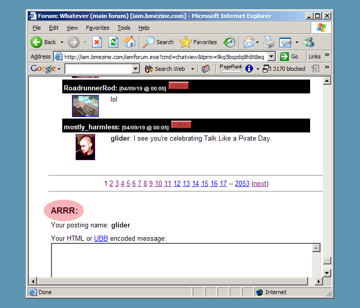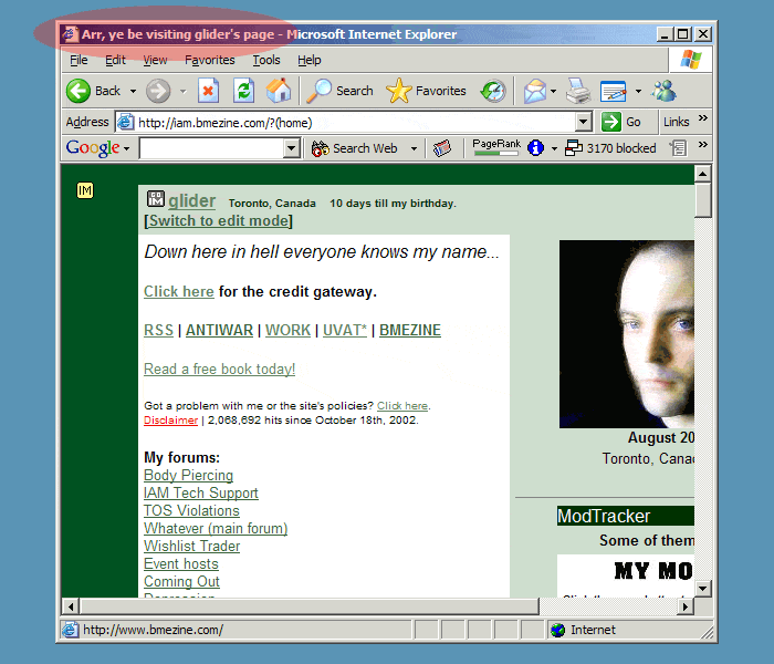 Well, my hatred of talk like a pirate day (yesterday) is no secret — I find it incredibly irritating and annoying. However, my love of gags and strange software behavior is also no secret, and of the two, that's the one that won out in the battle of September 19th. Below are some of the gags that the server had built in for those that didn't see them.