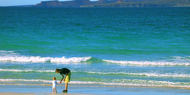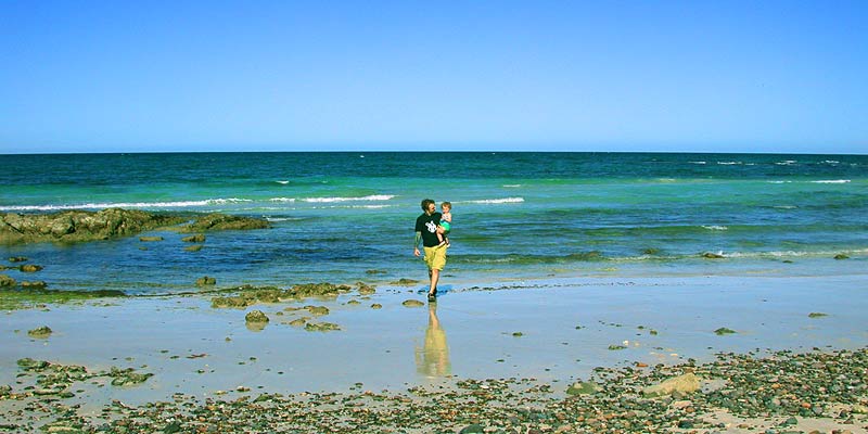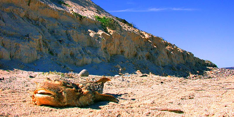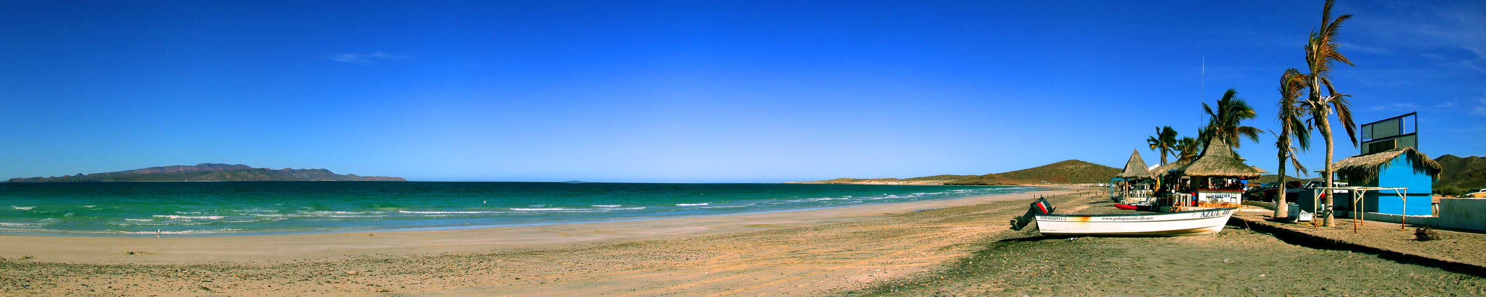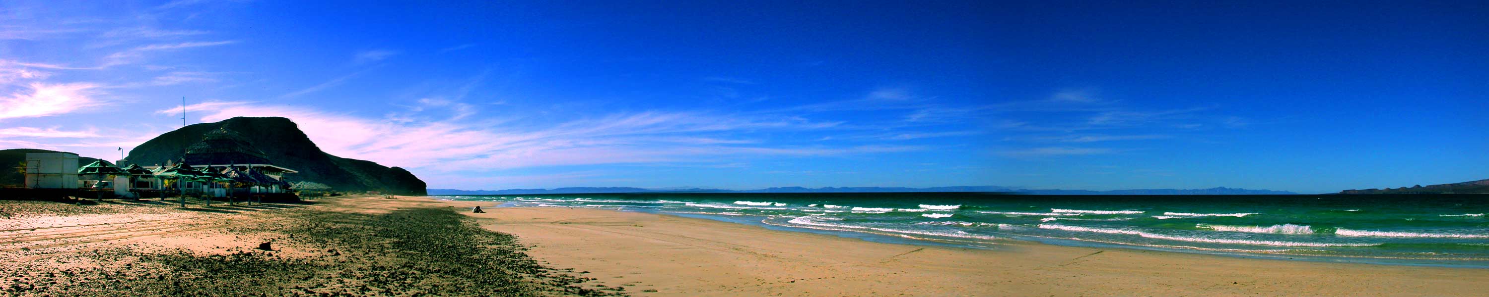 We went to the beach for a couple hours this afternoon. I like the drive because it involves some shooting over dunes and off-road paths which almost certainly void the rental agreement on our Jeep. Want to hear the kicker? We can rent a monthly car here for about the same as my insurance alone cost in Toronto. Anyway, here are a couple big panorama photos of the beach:
