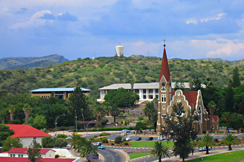 The drive from the airport into the city is about forty minutes. The land is disconcertingly similar to the part of Mexico we live in, although it's a little more green (even though this is a desert, it rains more here, and gets much colder in the winter). Similarly, it's not quite wet enough, nor does it have the quality of soil, to be suitable farmland, so Namibia is a major beef producing nation, as well as raising goats, sheep, pig, and of course game animals — we saw wild kudu grazing along the side of the road as we drove by. I didn't snap a picture but I'll try and do so tomorrow.