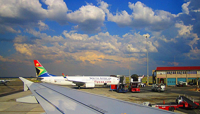 Flying in South Africa so far has been some of the most turbulent flying I've ever been through — many of the landings have been at very high speed, coming in fast and hard to minimize the chances of stalling I imagine. It's probably a great place to become a confident pilot (or dead). On