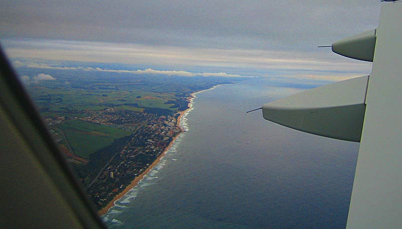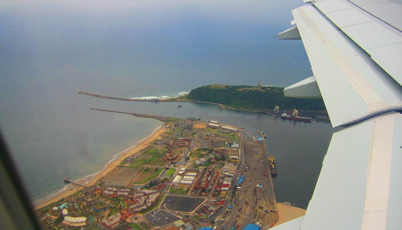 Durban is very pretty from above, incredibly lush and green, but very industrial as well with a lot of refineries and processing plants (immense sugar refineries and so on). I wasn't able to get a lot of pictures of it because it was dark by the time we left the airport, but here are two photos taken as we were coming in for landing, the first of the beach, and the second of one of the harbors.