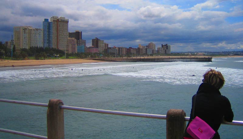Another day, another another three airports… Took off at about one from Windhoek, Namibia (left photo), and then landed at Johannesburg, South Africa (right photo), and eventually made it to Durban on the west coast of South Africa, at the southern end of Zulu territory. Some people have told me I may meet others with stretched lobes here, but I'm not keeping my fingers too crossed on it.