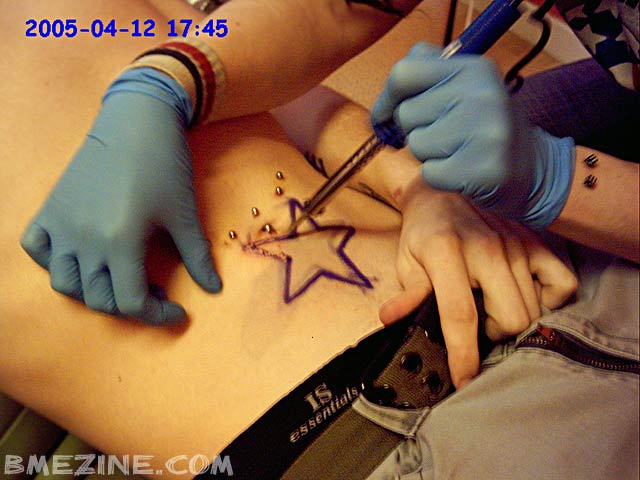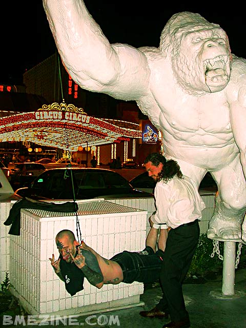 Some of you got to see Andrew S's amazing transscrotal (at about 3″, originally pierced at 3/4″ by BadApple) at APP — and some of you got to do more with it as well! Thank to Stainless for this photo of it. Oh, and if you're into transscrotal piercing be sure to check out the forum.