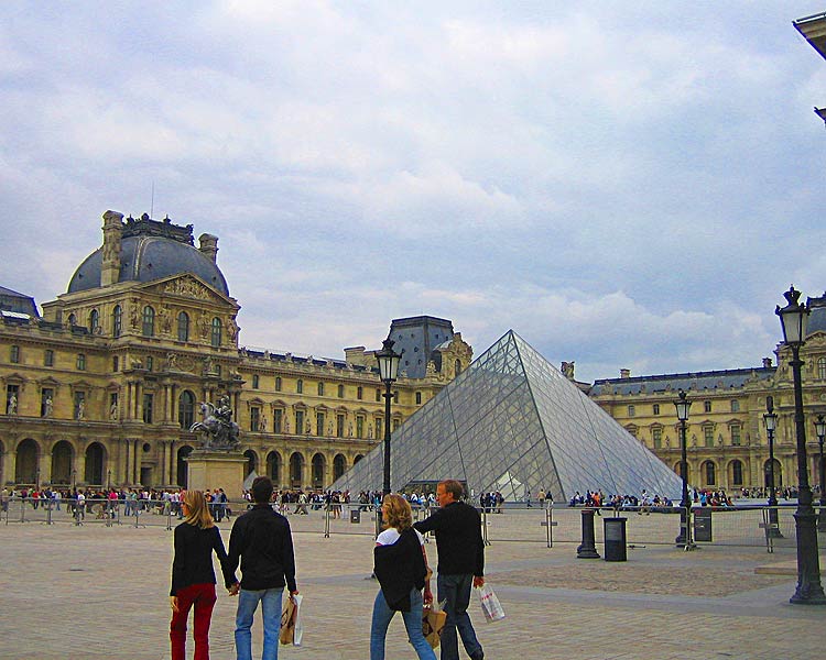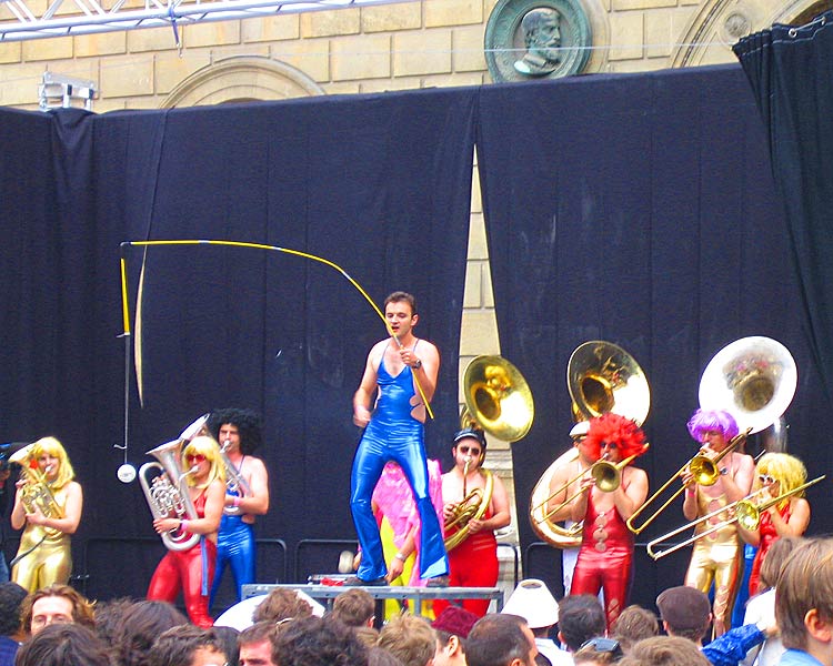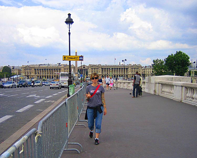 We took a nice looong walk around Paris today starting at our hotel in the Latin Quarter, up to the Louvre, down to the Eiffel Tower and back again. Paris so far is really nice, and we had the good luck (well, my good luck anyway, I don't think Rachel was quite as thrilled) to come across a wacky art school music performance (top centre photo). Well, time to rest the legs now…