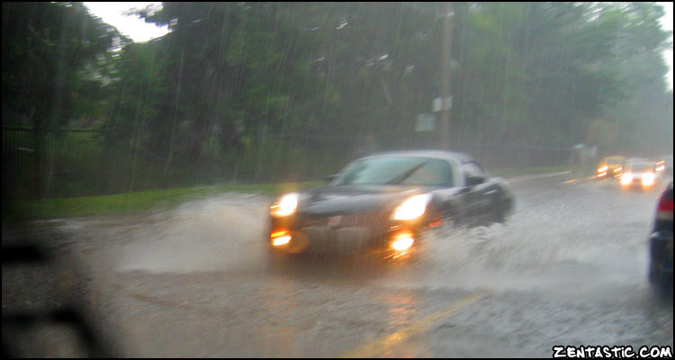 Water was also geisering out of the sewer drains! This Solstice was another car caught in the storm. My car was in a parking lot when it started with the sunroof open :-(