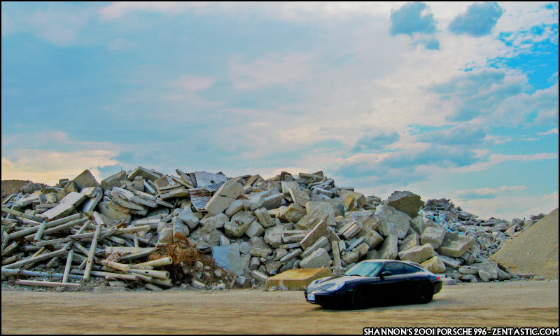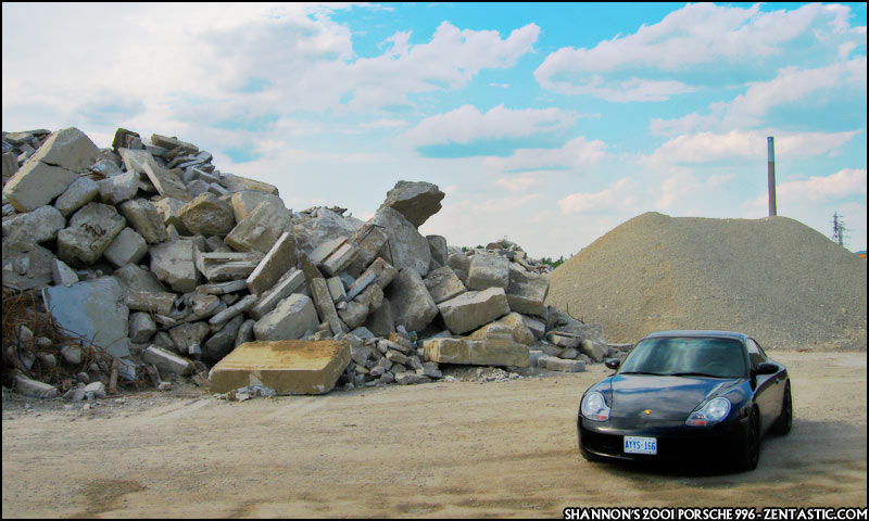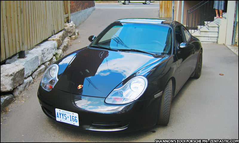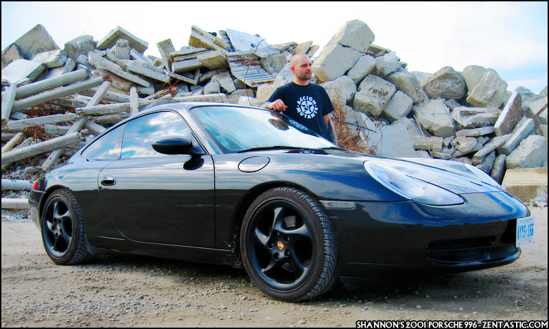 Anyway, I know I've said it before, but for anyone that doesn't already know and isn't bored silly of me repeating it, this is a 2001 Porsche 996. Other than the engine work, it's been repainted black on black, lowered, and had a few meaningless options added over the past few years (6-disc, cup holders, and stuff like that)… and its verified (as in this car has actually driven it) top speed is 307 kph but I'm pretty sure it'll go faster with the right maniac behind the wheel.