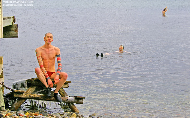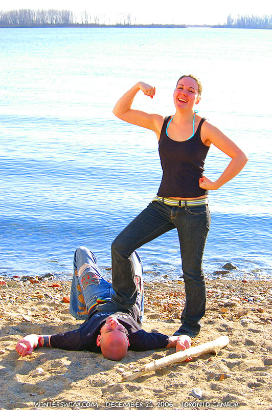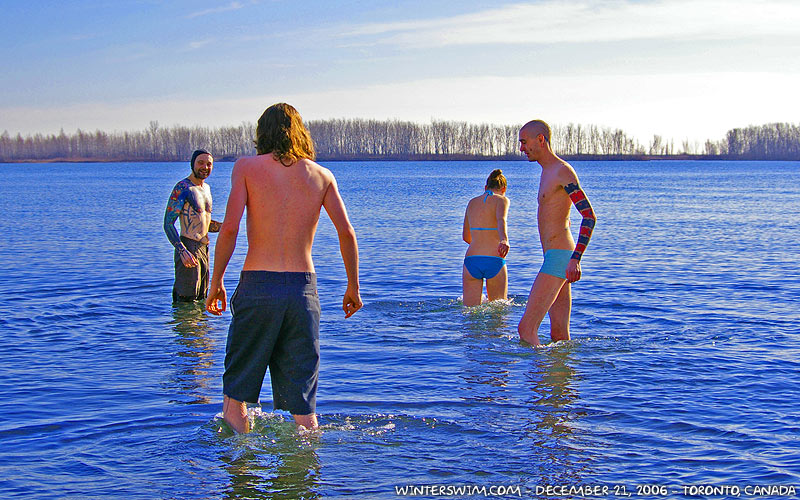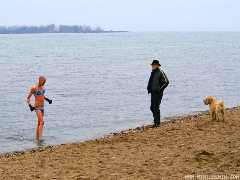 First, some pictures (by Saira) of Roo and my swim yesterday… There were some folks kayaking as well because it was such a nice day. I know that some of you are coming out for Polar Bear Club dips in Toronto and Ottawa, but consider joining us regularly… It's extremely good for your health and spirits.