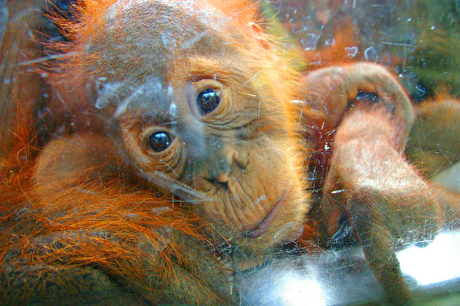 Speaking of surreal experiences, I was at the zoo with my daughter on Friday, and I always wonder what the orangutans are thinking as they cluster around the edge of their cells and stare woefully at the crowds tapping on the glass and taking their pictures. With many of the great apes scoring as high as humans on IQ tests, to say nothing of even very simple animals like crows (who use and invent tools), you have to wonder what their world view would be… It’s as if they’re living in The Truman Show but can see the audience the whole time. Do they realize they’re slaves and prisoners? Or because it’s the only thing they’ve ever experienced, they don’t really think about it? With minds that are roughly equivalent to humans, they must at least wonder about it.