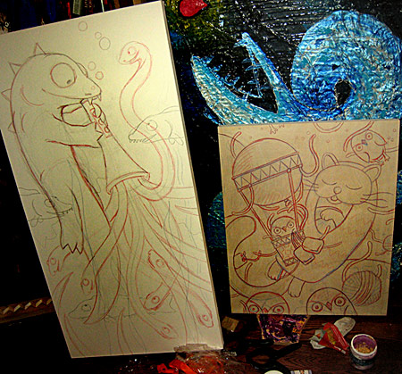 Continue reading for close-up pictures of what Caitlin and I are each working on…