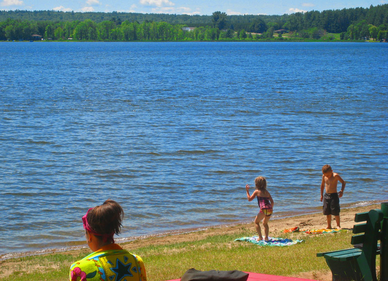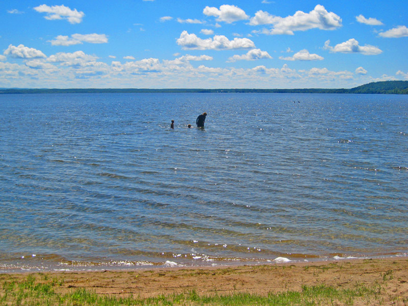 8. River and Nefarious after coming back from one of our swimming trips to Lake DorĂ©, a beautiful golden sand beach with exceptionally shallow (and warm) water — they could walk and walk and walk and still never get past the middle of their chests.