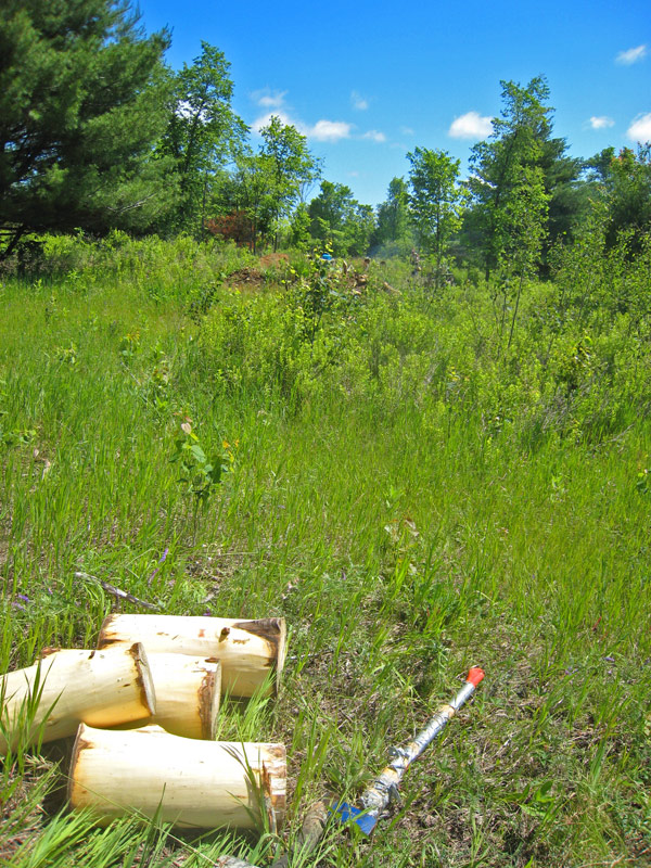This has got to be the longest I’ve been offline — truly offline with not even cell phone access — in a decade. Caitlin and Nefarious and I just got back from a week up in Algonquin Park, where we were staying on a homestead helping with (and learning about) an eco-construction project. In this case, the project we took part in was building a cordwood-walled structure with cob (clay/sand/straw) mortar, all of it locally sourced. In addition, pretty much everything we ate was either grown or foraged on the property, so I also learned a little more about wild foods that can be eaten here in Ontario.