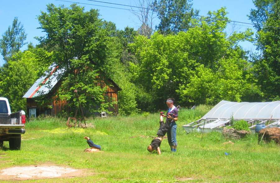 7. Nefarious in the yard doing yoga with River, a seven year old boy from Niagara that was there as well. The whole experience, especially seeing the way she interacted with it, really reminded me of my childhood and what a wonderful place for young people the country is.