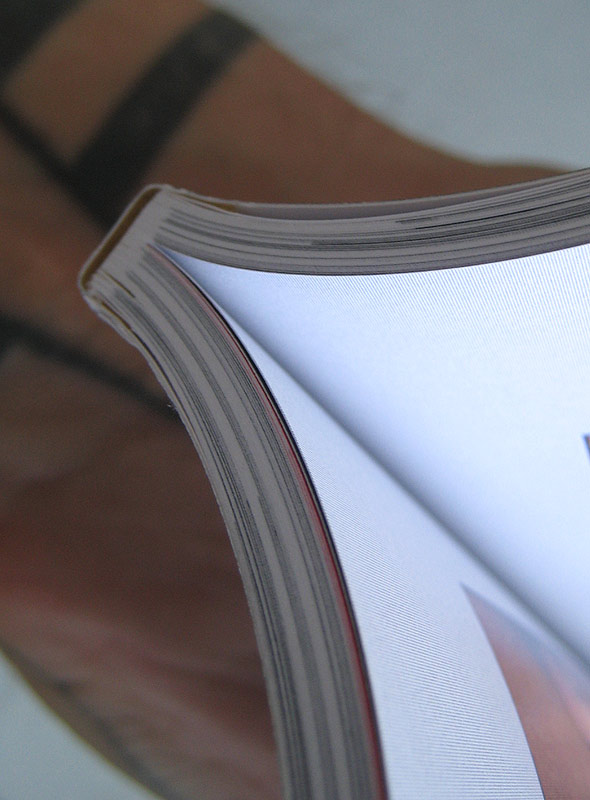 - Comparing the thickness of the new book (bottom) to the old book (top).