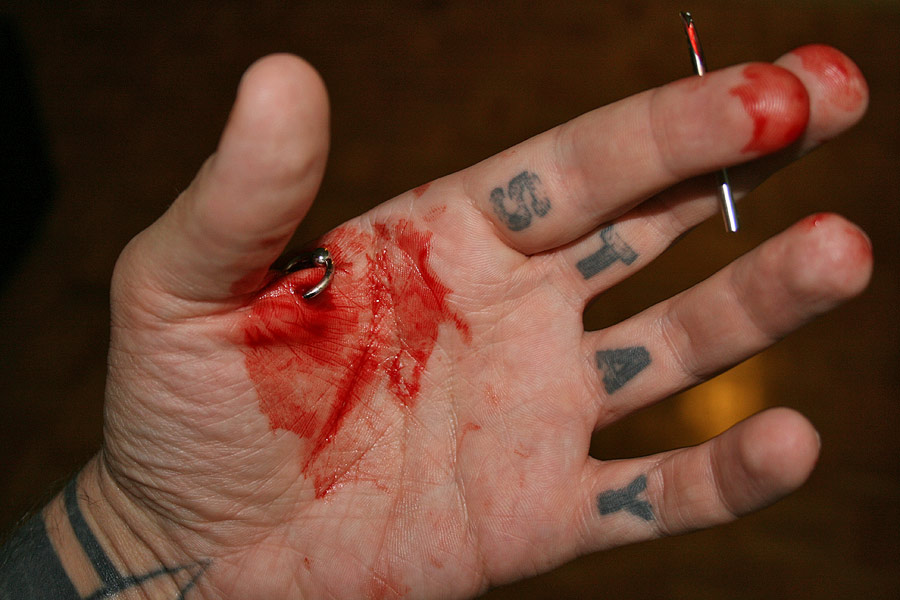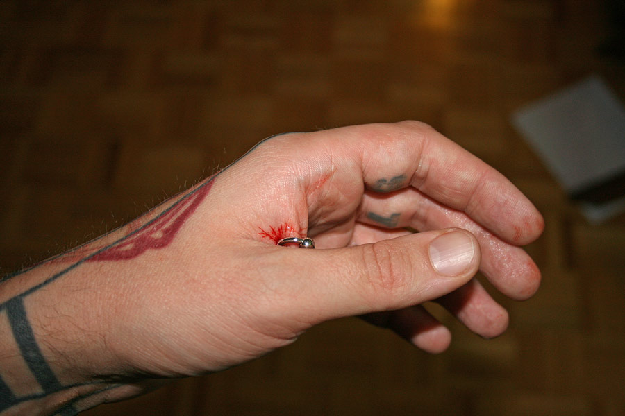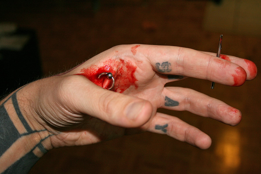 I’ve spent a bit over a year now avoiding any body modification interests other than a little tattooing because my interest in body modification had become a potential liability in court and was being used to help paint me as ‘unstable’ (not a fun thing to have to defend to decrepit old judges!), but now that that’s over, I figured it was time to celebrate. One of my very first piercings — and one of my favorites — was my hand web piercing, and I’ve been missing it… So I decided to do that again!