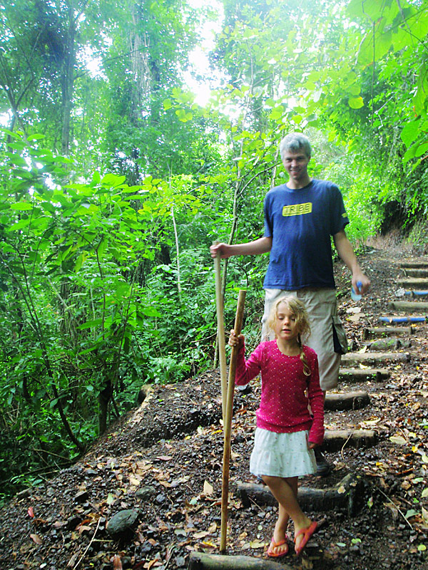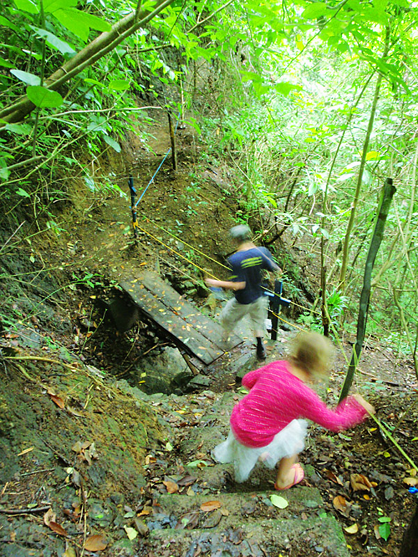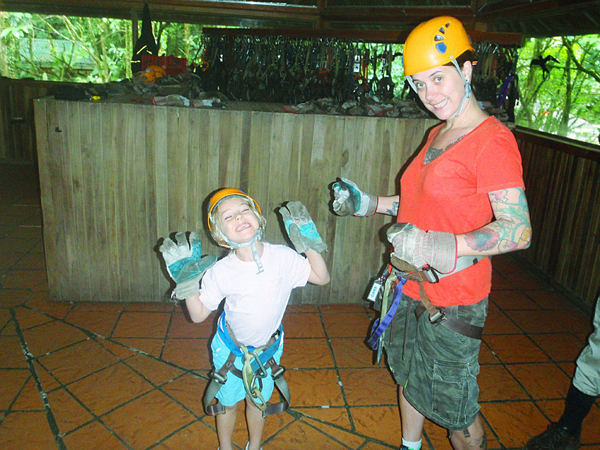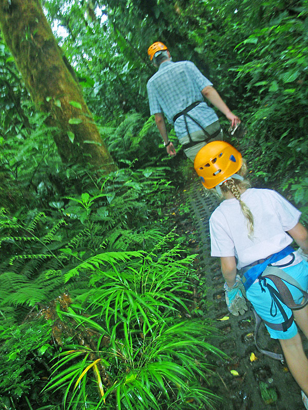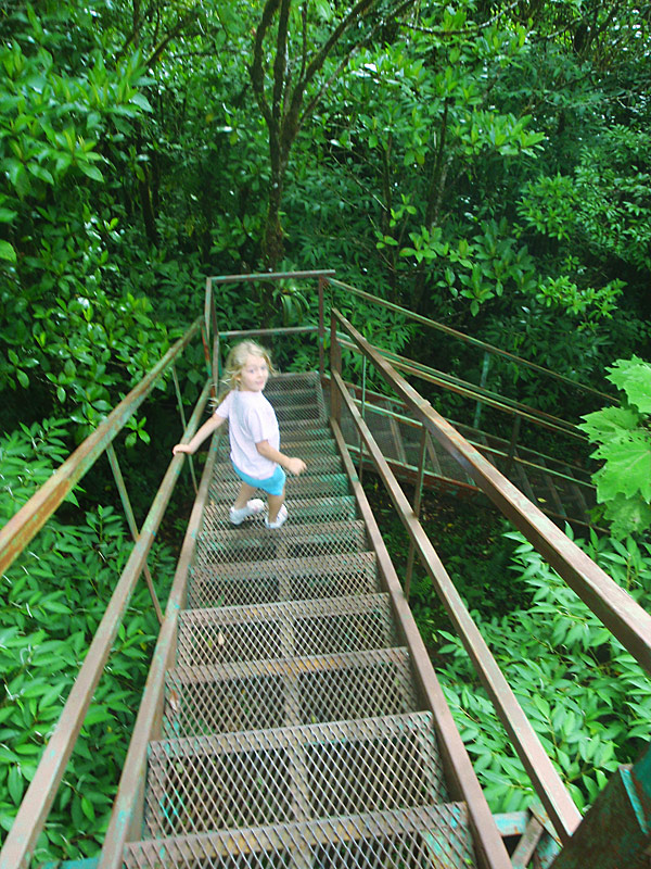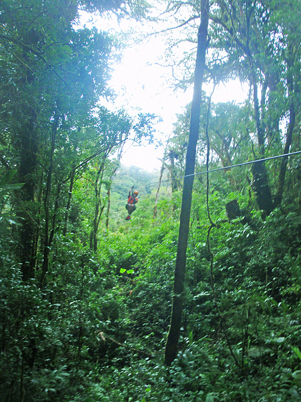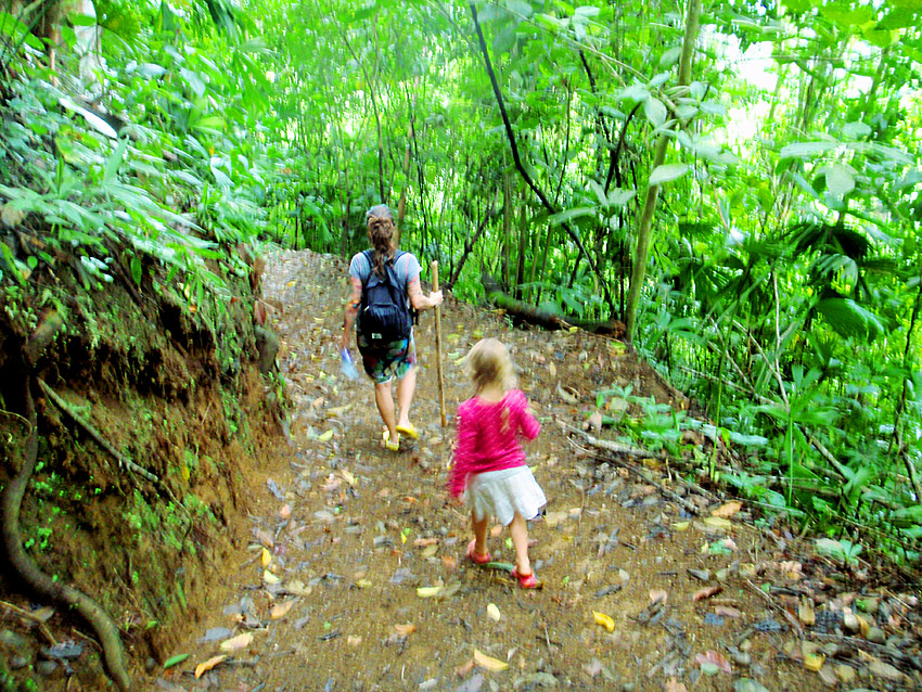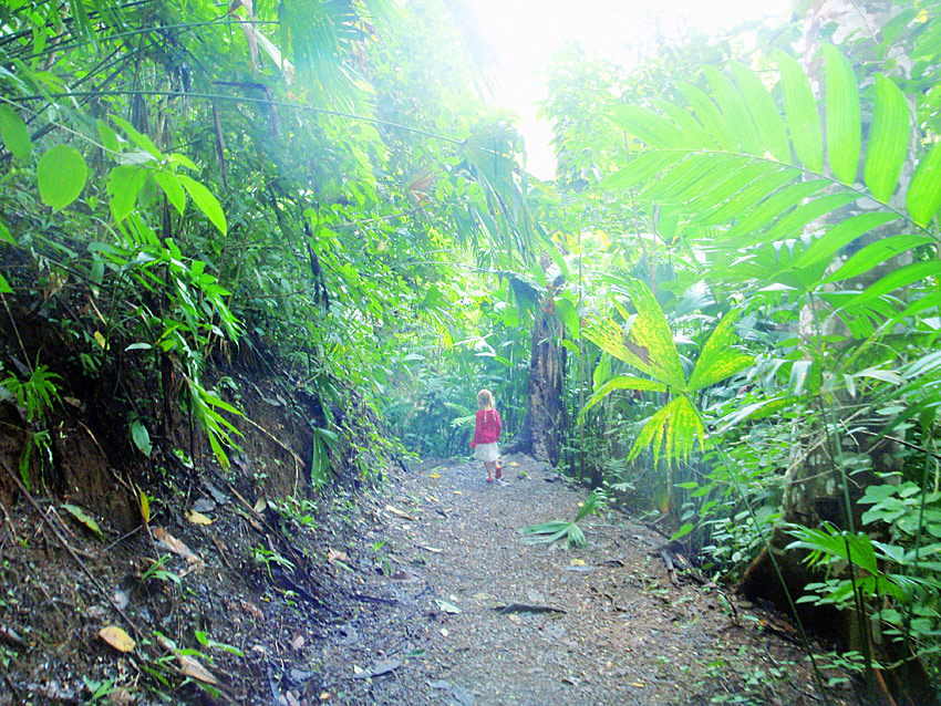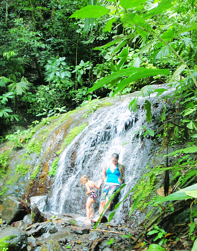 The walk back though was completely miserable, hiking the 2km back up the mountain. Imagine 2km of rocky muddy stairs. The pain in my legs was almost unbearable and I had to stop regularly and was it not a “no choice” deal, I’m sure I would have given up. I was so proud of Nefarious for being able to do such a huge hike. Along the walk through the rain forest as well as many birds and the screaming in the distance of what must have been some sort of primates, we also saw a poison tree frog (I have photos for proof), and a battalion of leaf cutter ants disassembling greenery and carrying it in formation into their lair — a pretty amazing thing to see in person.