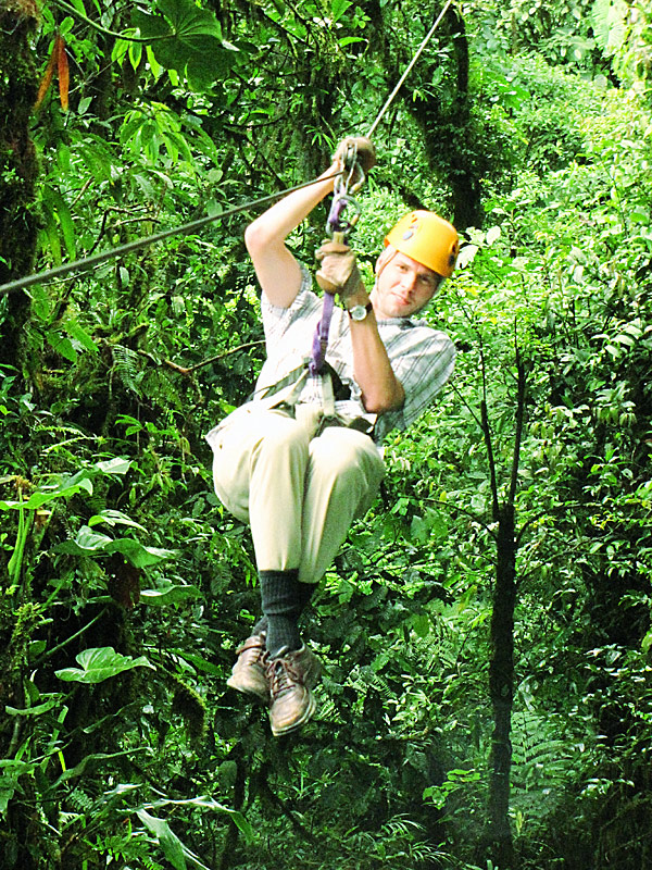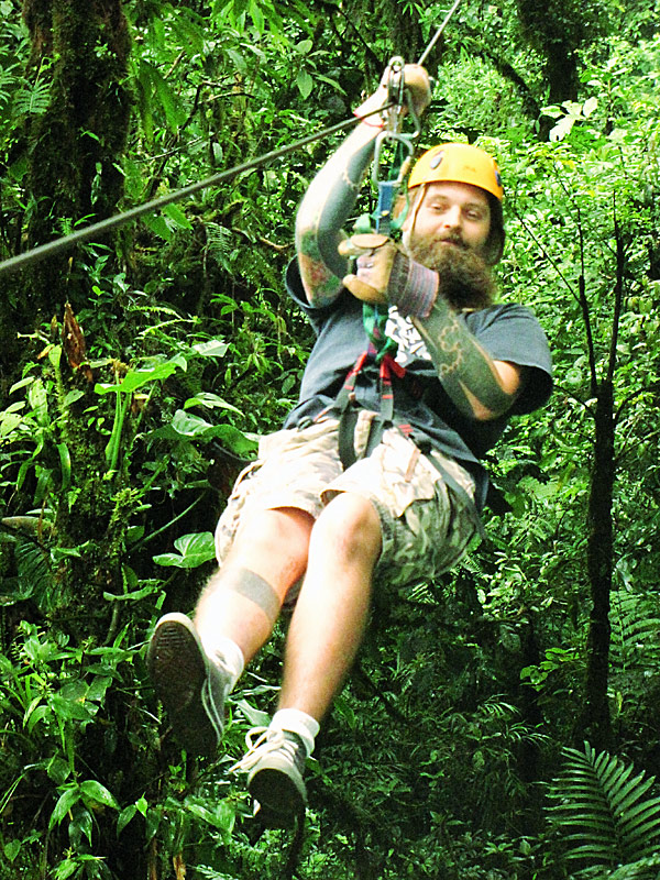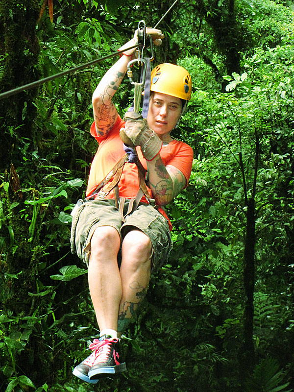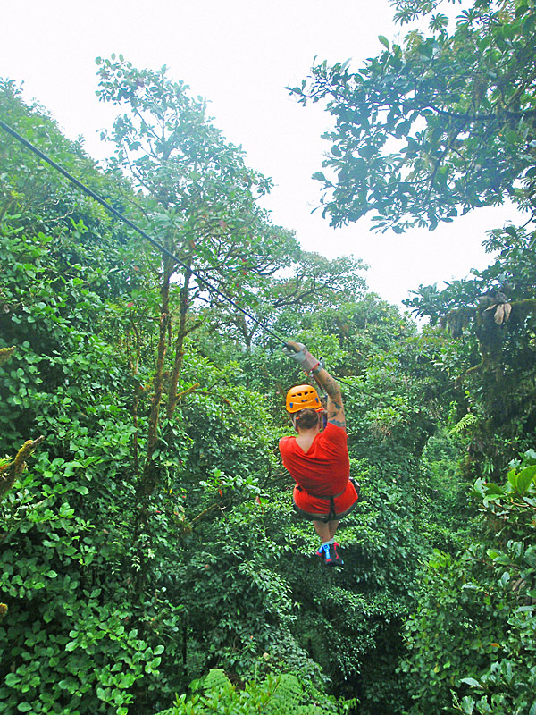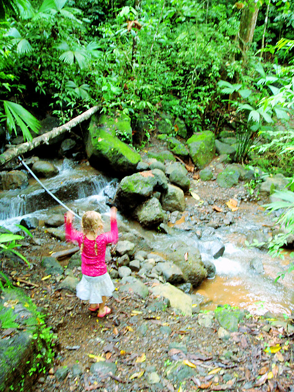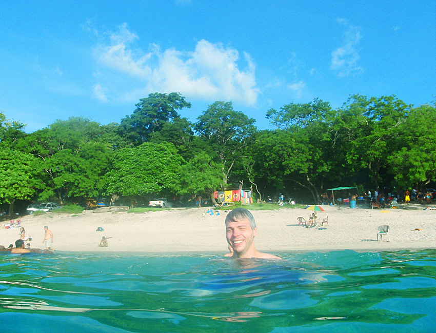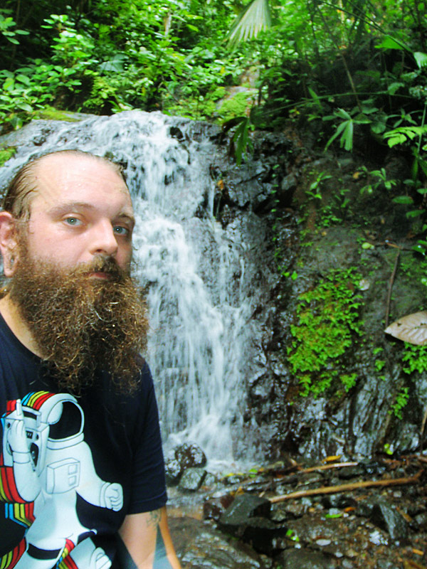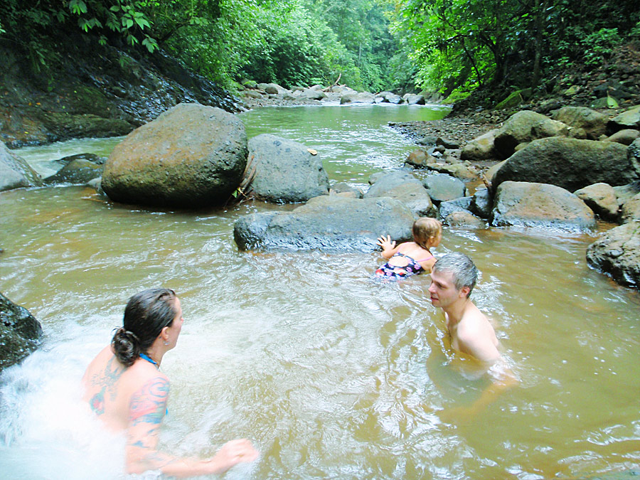 We’re having an amazing time here in Costa Rica. Yesterday we drove out to Playa Jaco, about a two hour drive through the mountains — thank god our rental car has GPS, or we would have got lost a few times. When we almost got to the beach we saw a sign that said “Waterfall… You can swim in!”, so we took a detour and drove 5km up a very steep mountain road (and saw an anteater ambling along the side of the road on the way).