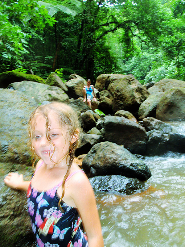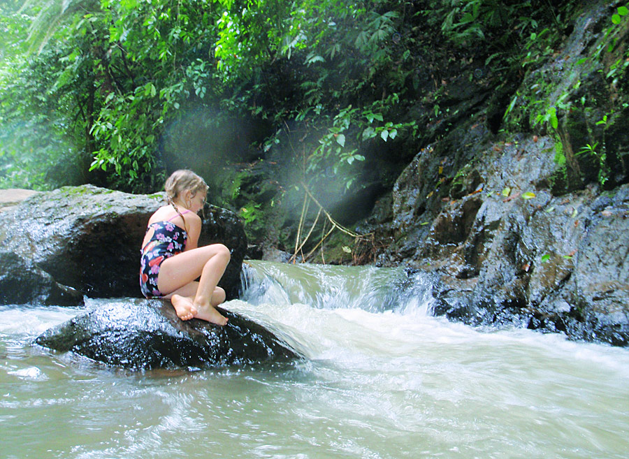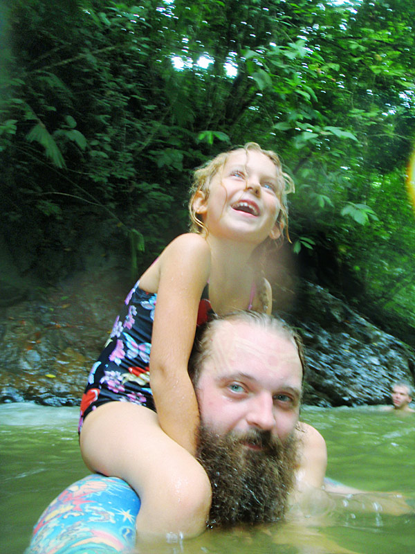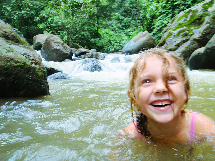 Once we got to the parking lot at the top, we had to hike 2km — about a forty five minute jaunt that was mostly downhill and then climbed up again at the end — to get to the waterfall. It was really wonderful getting to stand in the cold water cascading down over us after having been drenched in our own sweat over the long and draining walk. Next we walked down to where the rapids pooled and swam in them, slowly being pushed down the river from pool to pool. It’s hard to describe just how idyllic it was, and how happy we all were there. As a father there’s no greater joy than seeing your child laughing wildly as they suck in the experience of life in its best moments.