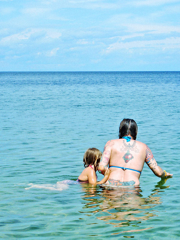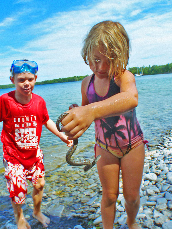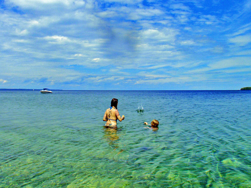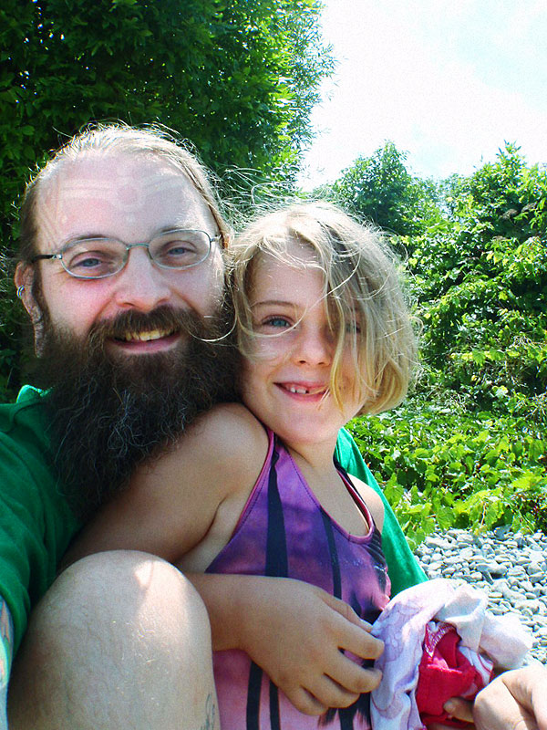 We’ve been having a nice week, with the highlight probably being a visit to a friend’s cottage on a gorgeous stretch of sandy Georgian Bay beach, which we spent most of our visit lounging upon, Nefarious spending as much time as she could in the surprisingly warm water. If you’re wondering why I have a cane in the water, it’s just because Nefarious wanted to go out deep after I was tired out (I didn’t initially look this silly), and I joined her so that she could go out further than would have been safe on her own. Even with all the pain — which grows more substantial every day, something that is hard to believe is possible, and the potential for imminent demise — boy oh boy do I still spend most of my time happy and appreciating what a lucky hand I’ve been dealt in terms of the experiences I’ve had and the people in my life. Please don’t ever think I’m whining about health issues (that said, they do suck!).