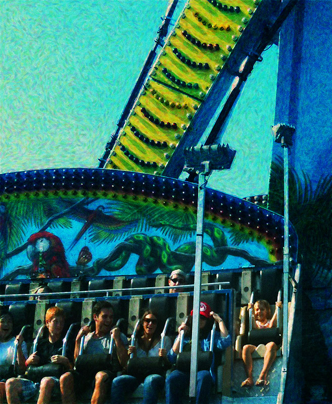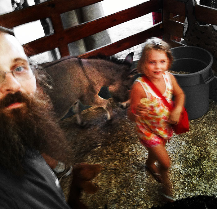 Since she’s 48″ this year, it’s the first season that Nefarious can go on nearly every ride on her own, and she definitely took advantage of that and braved a ton of exciting ones, as well as old favorites like running through the funhouses over and over and over. It’s totally nuts that people spend $5 for a single 45 second walk (not that fairs are known for being devoid of rip-offs), but Nefarious had a ride-all-day pass and it was worth every cent (although I saw some very angry parents of short kids who’d spent the $36 for that bracelet, realizing after the fact that their child was too short for most rides). While she enjoyed the rides I played policeman and reminded smokers that their act was not permitted… I was expecting rude refusals, but everyone was begrudgingly polite and put out their cigarettes. A much better action than getting annoyed and taking passive-aggressive photos as usual.