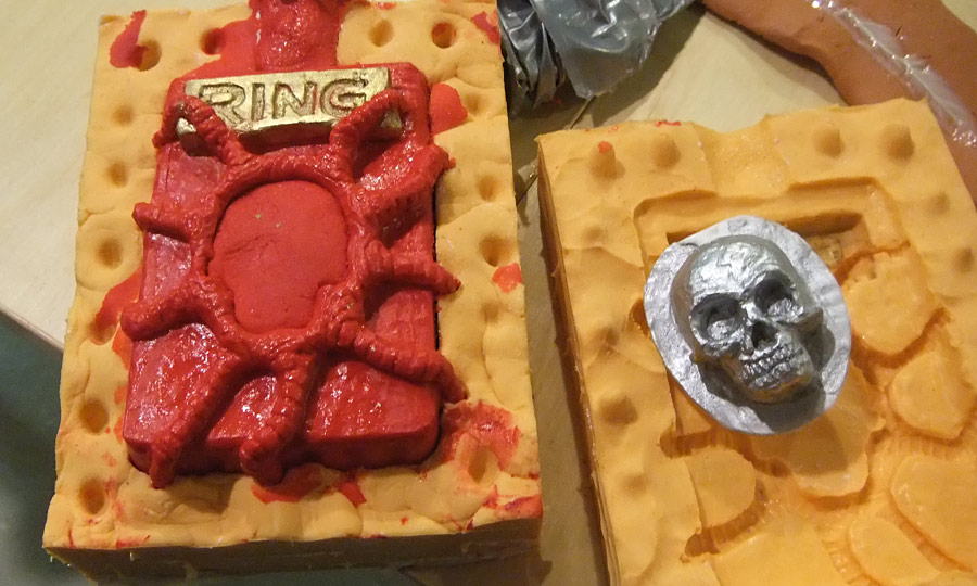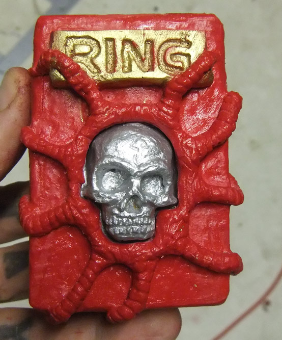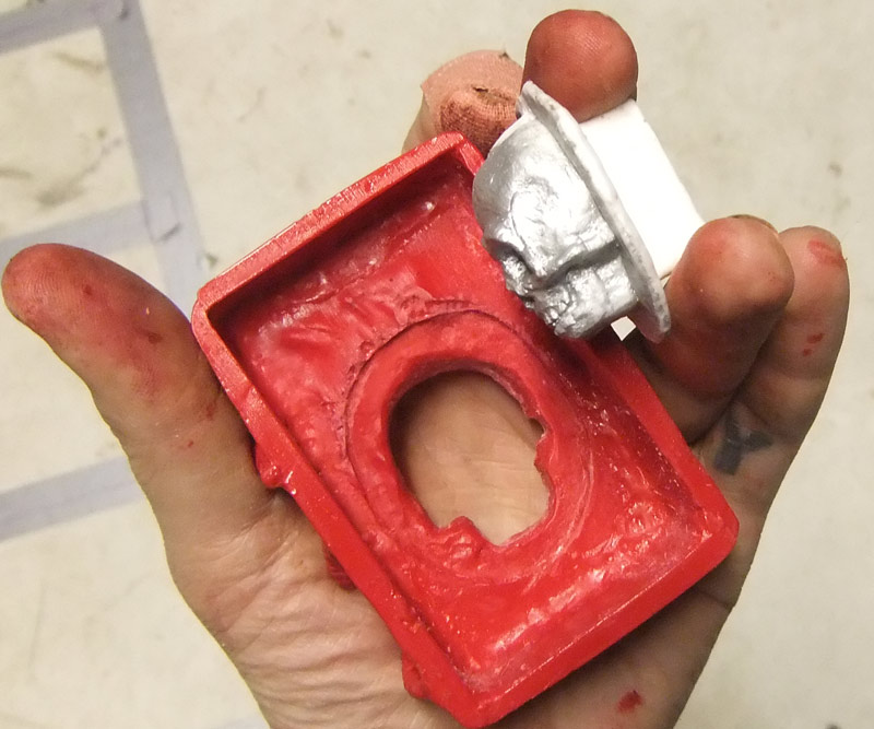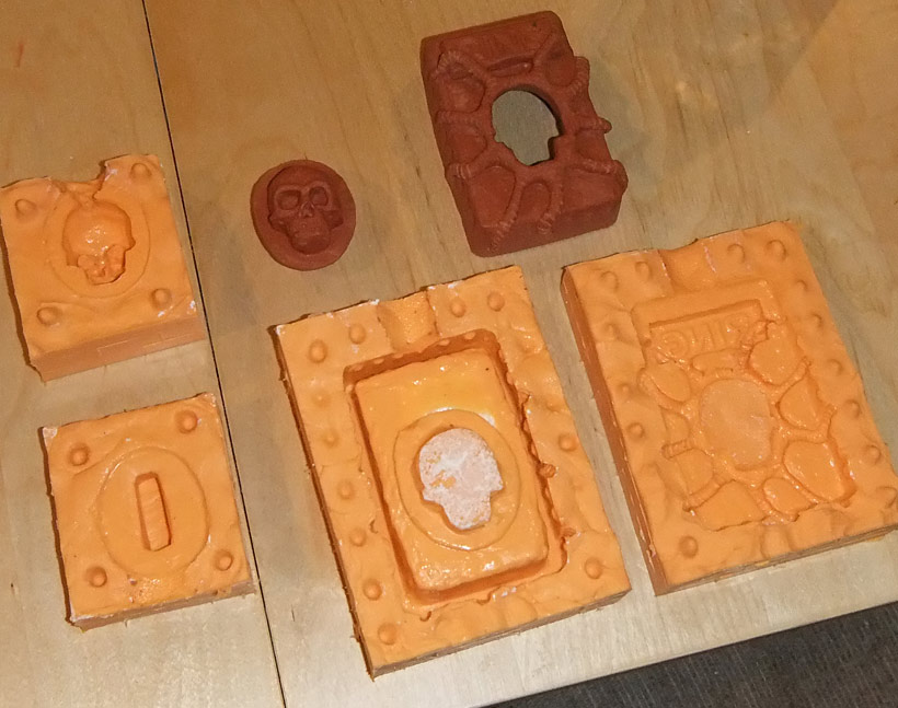 As some of you may recall, ages ago I made a wooden doorbell enclosure because our studio’s bell button does not have a cover and looks like the sort of thing that might electrocute a delivery dude. Well, I lollygagged on installing it and it sat in a box by the front door for many months and was eventually lost so it was never installed. So over the last couple of days I made a new one by sculpting it in clay and then making a nice two part mold out of silicone, and casting it in hard plastic and then painting it. In hindsight I am thinking I might have been better off just leaving it in plain plastic (maybe with the skull lighting up) but it’s easy enough to cast another one if I want to change it — and if anyone is really desperate for one, they cost me cents to make and I’m happy to make more.