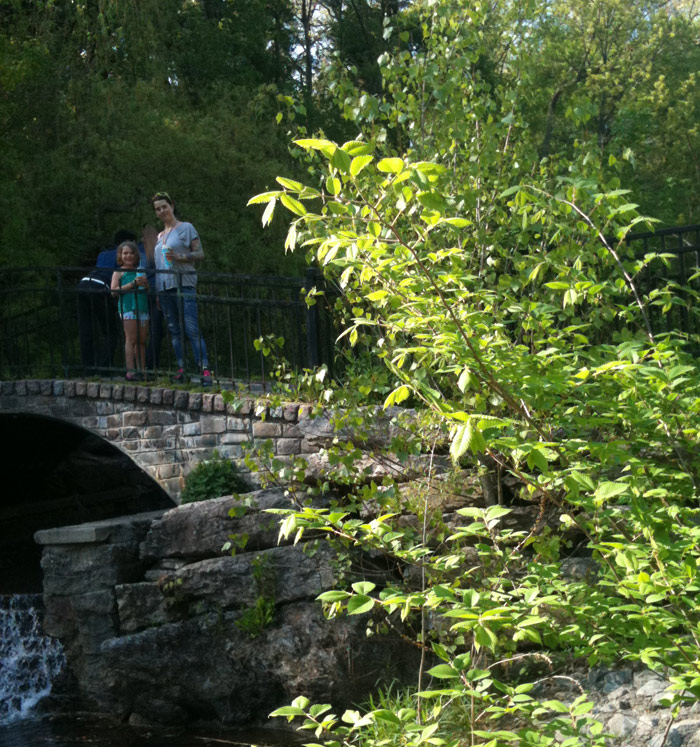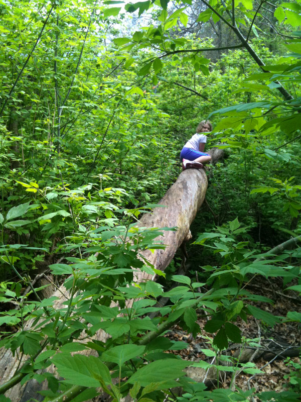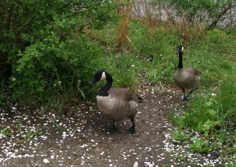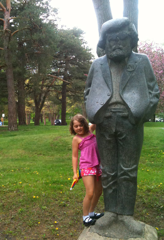 I heard on the news today that school kids in Toronto are not getting enough exercise — “enough” being defined as an hour of physical activity per day. Apparently only 3% (yes, THREE percent) of girls are achieving that. Wow. No wonder there’s an obesity epidemic. With that in mind, Nefarious and I went to the park to play after school (as I’m proud to say we almost always do) and after finishing up we took a walk through the mini zoo of High Park. Last time she was there with Caitlin they fed the emu grass and flowers, and on seeing Nefarious the emu started growling/groaning/purring and excitedly came over to see her. He seemed extremely pleased to be fed dandelions, which he greedily wolfed down with obvious delight. This phonecam video is only the last ten percent of his treat.