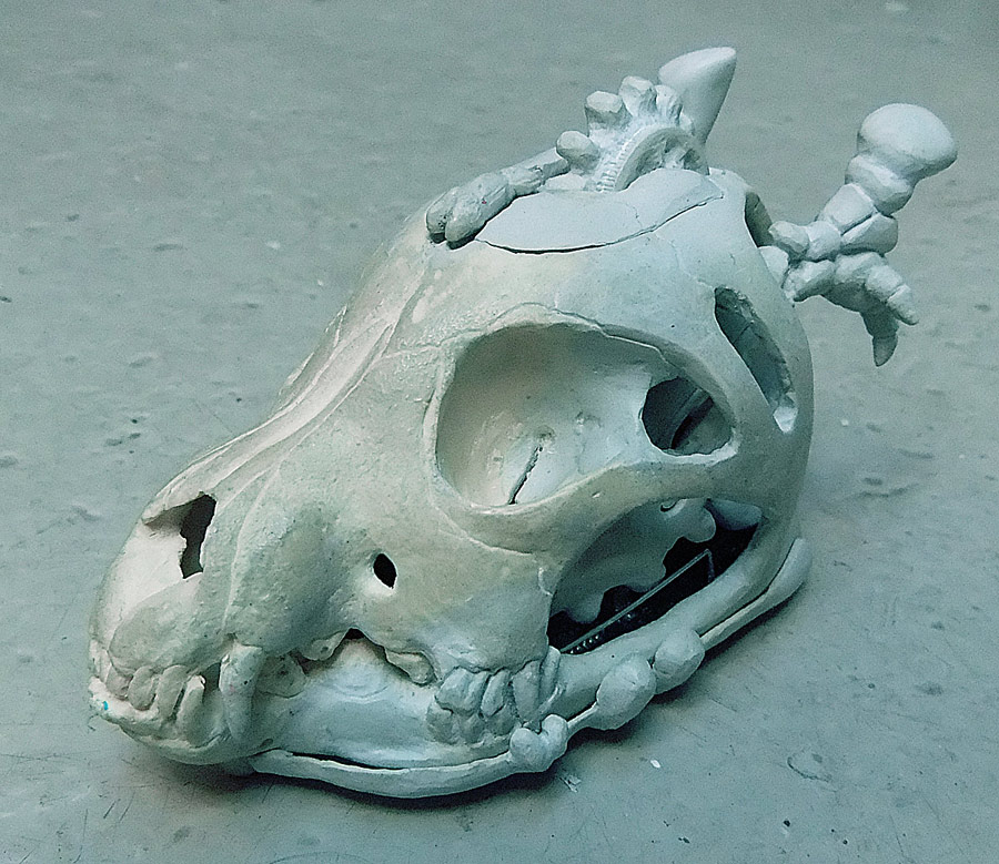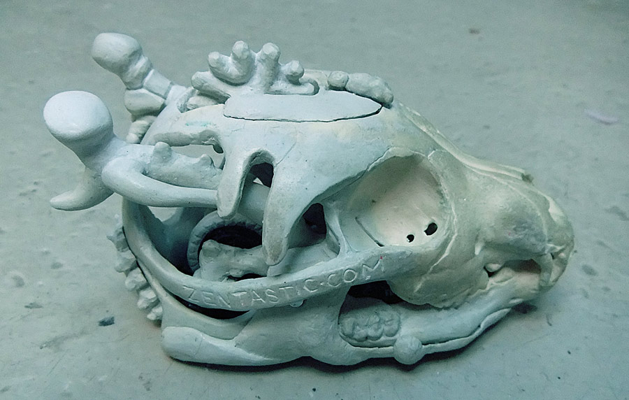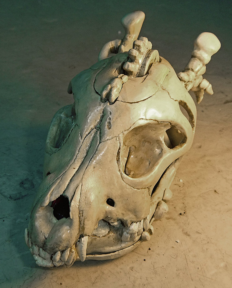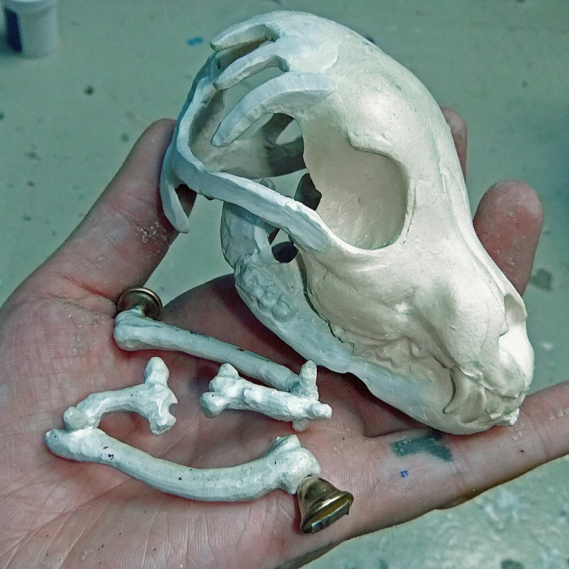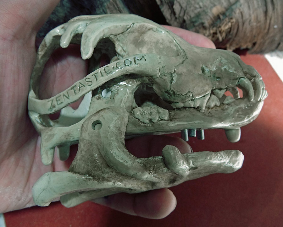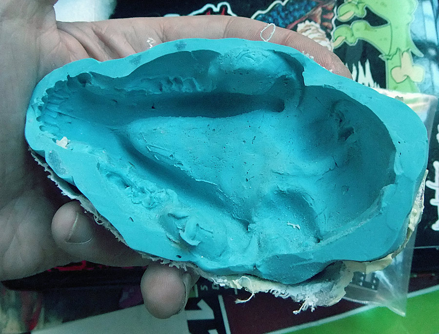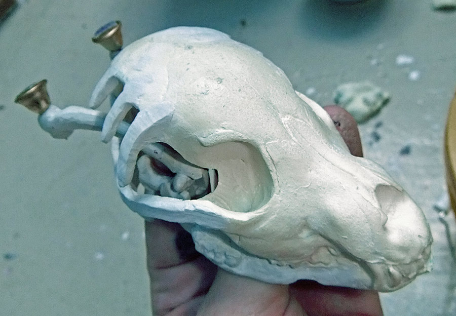 Finally, let me show you the dog skull (a real dog skull from a small older dog bought at Skulls Unlimited) and part of the silicone mold. I think that if I do this project again I’m going to try and use the real skull all the way through. It wasn’t an option this time because it just didn’t fit.
