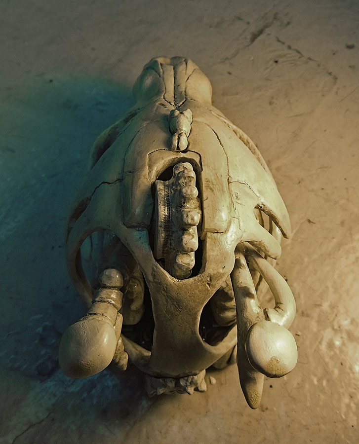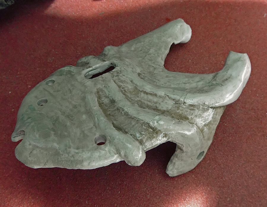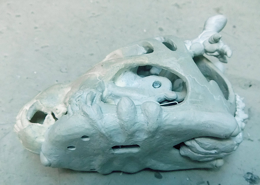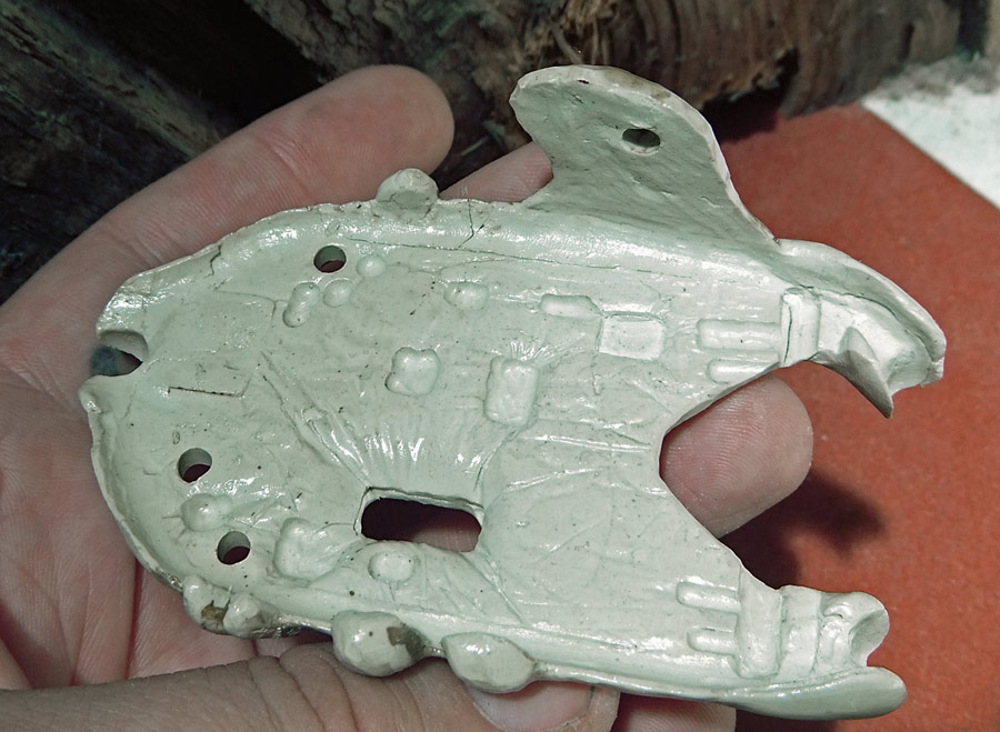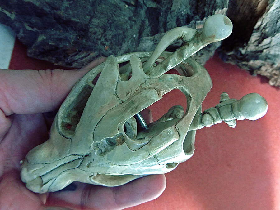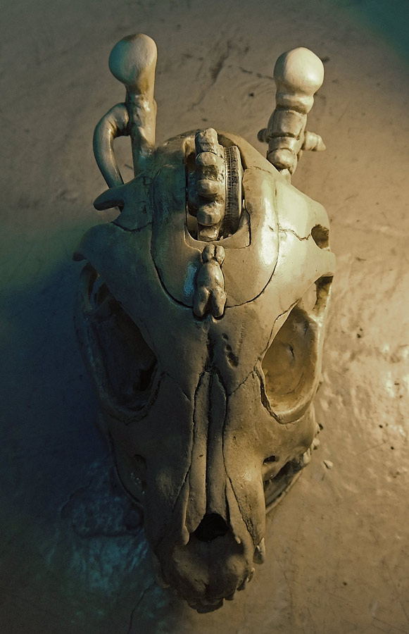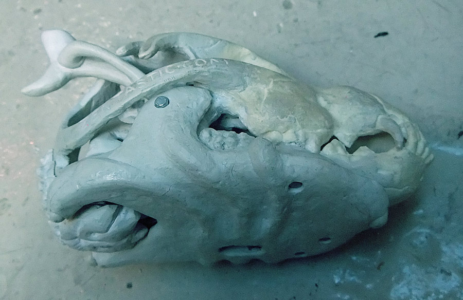 Finally, let me show you the dog skull (a real dog skull from a small older dog bought at Skulls Unlimited) and part of the silicone mold. I think that if I do this project again I’m going to try and use the real skull all the way through. It wasn’t an option this time because it just didn’t fit.